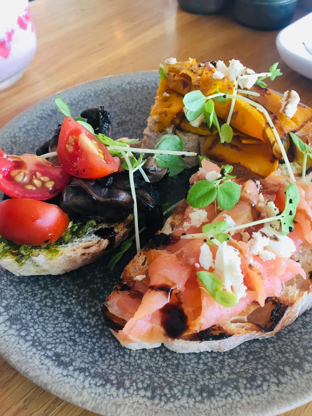 It included a trio of bruschettas and a strawberry smoothie.